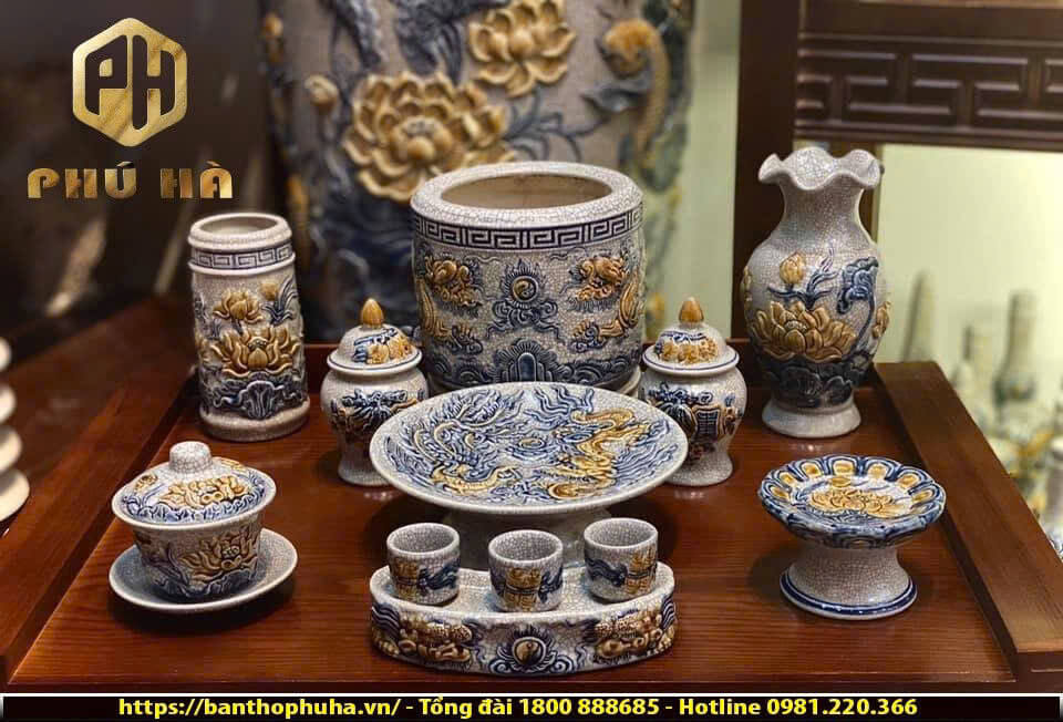 Gốm sứ men rạn đắp nổi – Bộ 12
